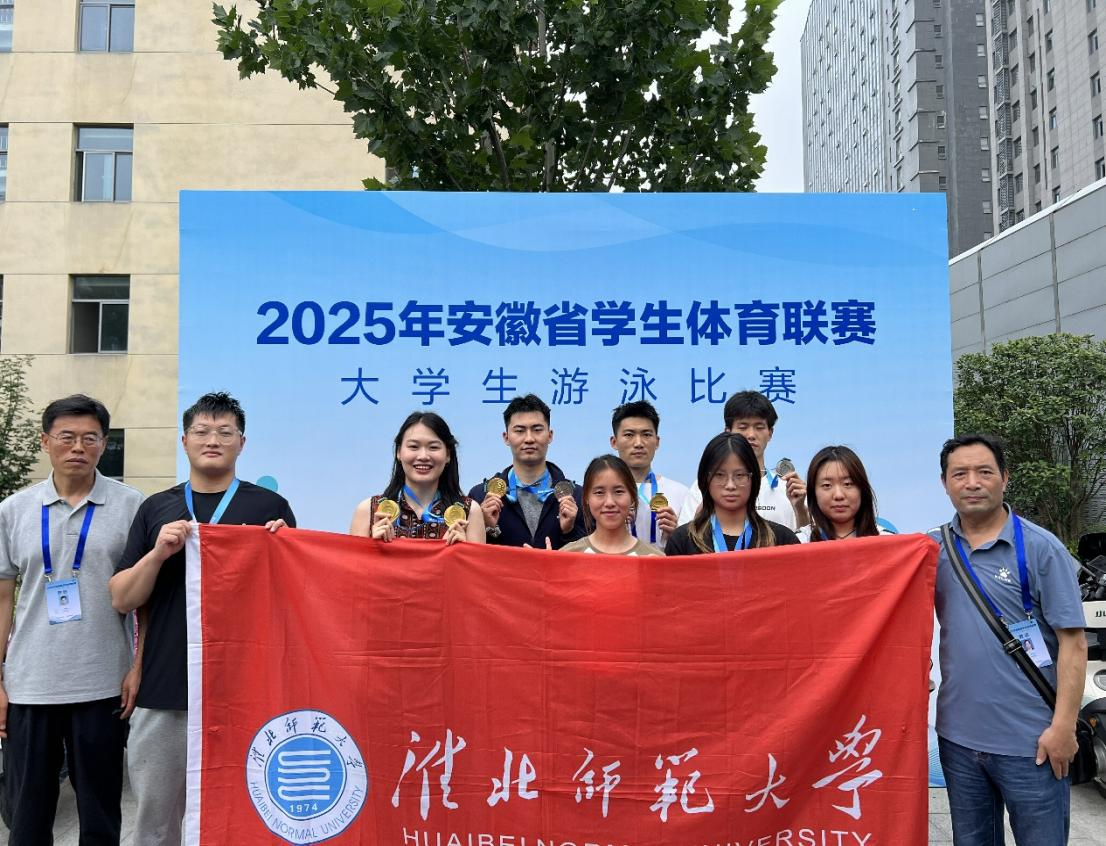 6月11至13日,由安徽省教育厅、安徽省体育局主办的2025年安徽省学生体育联赛大学生游泳比赛在中国科学技术大学游泳馆举行,全省36所高校300多名学生运动员参加比赛。我校游泳队共取得4块金牌、3块银牌、4块铜牌的好成绩,并创4项赛会新纪录,名列全省本科高校第四名,师范院校第二名的好成绩。